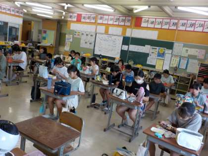 暑い中の競技だったので、空腹と疲れ気味で帰校しました。おうちの方につくっていただいたお弁当を黙々と食べ、ちょっと元気が回復したようでした。