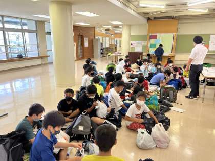 5・6年生は明後日の宿泊学習に向けて荷物点検を行いました。忘れ物のないように、活動に必要な物を早く取り出せるようにしっかり点検しました。10秒かからずにぱっと取り出す子の姿も。自分でしっかり準備してきた証拠です。