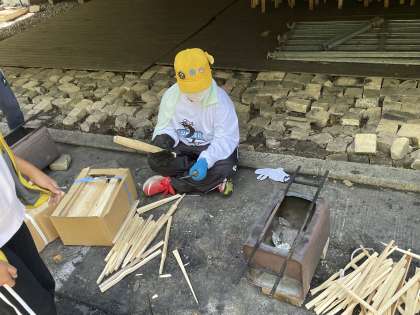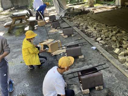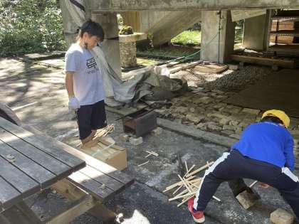細かい薪を作ったら、火をつけてお湯を沸かしていきます。