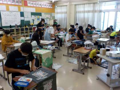 5年生で学んだことを生かして、チャコ鉛筆で線を引いたり、仮縫いをしたりすることをがんばっています。今後は、ミシンで縫う作業も予定しています。