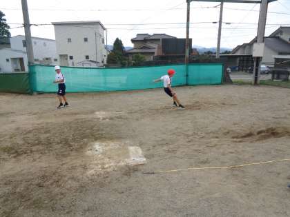 体育では走り幅跳びにも取り組んでいます。片足で踏み切って両足で着地することができるように練習を重ねてきました。今日は2回目の記録測定でした。記録が伸びた人もいれば、なかなか記録が伸びない人もいましたが、友達と声を掛け合って活動できました。