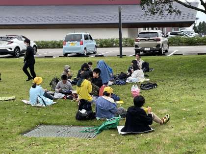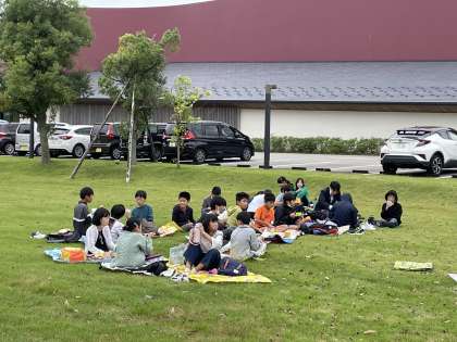 能作の前庭をお借りしてお昼ご飯です。 おいしくいただいています。