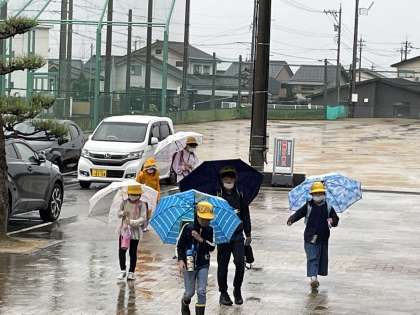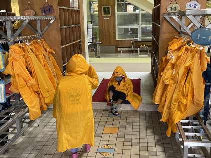 1年生は合羽の取扱いも上手にできるようになっています。