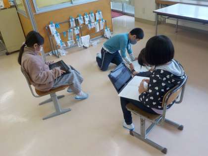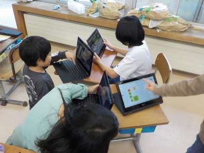 パソコン上でみんなの意見を交わしながら、担当しているのキャラクターについて意見をまとめました。 どの班も班員同士で協力して、考えることができました!