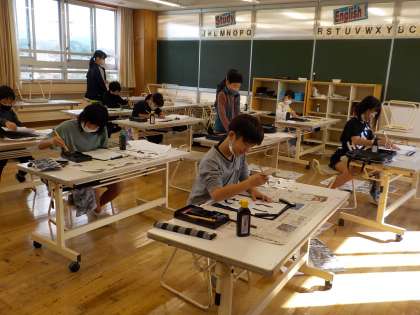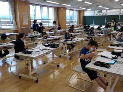 今日は、さつまいもほりがありました。いもほりの後の書写の時間に「いも」と書きました。一人一人違った「いも」に仕上がりました。