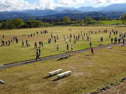 今日は「ファミリー班遠足」でした。午前の時間を利用して殿様林緑地まで歩いて行きました。爽やかな秋晴れの下、みんな最後まで歩き通しました。殿様林緑地では、6年生がリードして、楽しく遊びました。