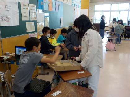 今日は、4−1で係イベントを開きました。スクラッチ係、工作係、勉強係、イラスト係がそれぞれのブースで、みんなを楽しませていました。