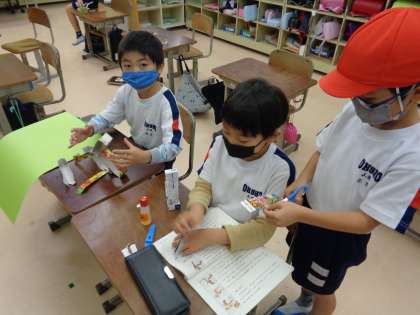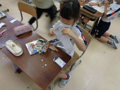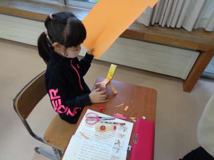 前回の国語の時間と今回で、馬のおもちゃ作りに取り組みました。教科書の文章を読んで作ることに苦戦し、前回は失敗してしまった子もいましたが、前回うまくいかなかった子どもたちは、今回リベンジしてもう一度馬のおもちゃを作り、うまくできた馬のおもちゃに満足気でした。