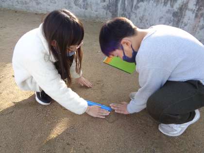 前回は日なたと日かげの違いを、地面を触って比べたり普段の生活経験を思い出したりしながら比べました。今日は、温度計を使って午前と午後の温度をはかって日なたと日かげや時間によって変化する様子を調べました。予想よりも温度の変化が大きかったようで、驚く様子がみられました。温度計の使い方はばっちり覚えたようなので、これからも正しく観察や実験ができるようにしましょう。