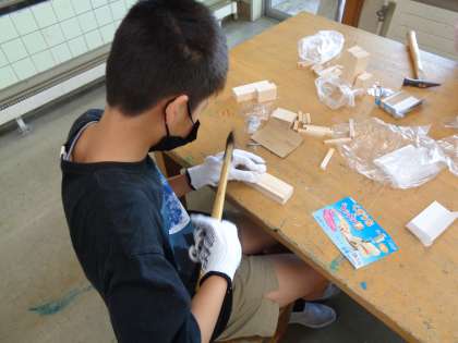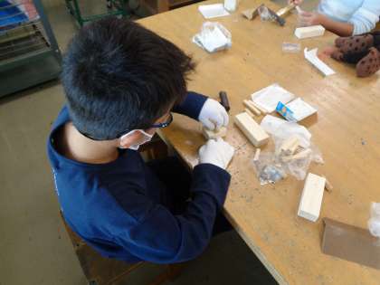 図工では、初めてのくぎうちに挑戦しました。動画や教科書でくぎの打ち方を確認してから行いました。一つ一つていねいに作業を進めることができました。後半には工夫していろいろな形づくりに取り組んでいました。
