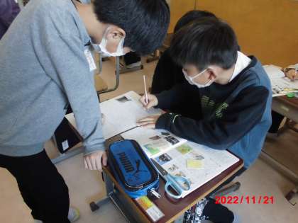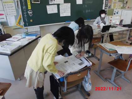 社会の授業で、調べたことを新聞にまとめる学習をしています。