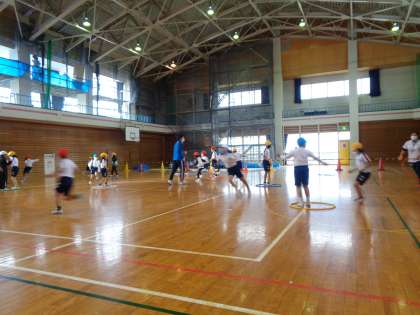 今日は富山市体育協会のスポーツ指導員の方に指導していただき、コオーディネーショントレーニングを行いました。楽しみながら身体全体を使って運動することができました。「まだまだやりたい」という声が聞かれるなど、充実した時間を過ごせたようです。