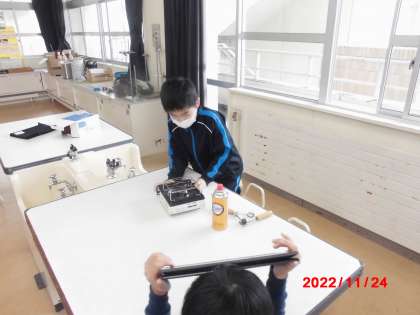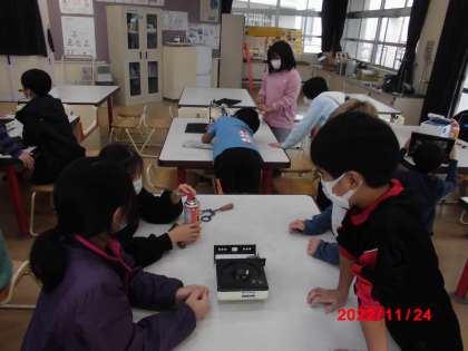 6時間目の理科の鉄球を熱する実験をしました。熱したときの体積の変化を実感と手応えで確認しました。欠席している友達のため、動画でガスコンロの使い方を確認するため、動画も撮影しました。