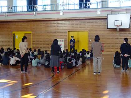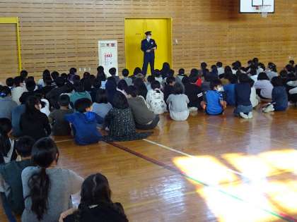 富山南警察署、南防犯協会の皆さんに来ていただき、不審者への対応について学びました。