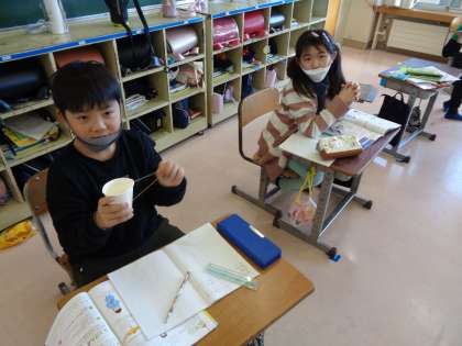 理科では、音のふるえや伝わり方についての学習が始まりました。実際に音をならして物のふるえ方について確かめました。「音を出すとふるえる」「音の大きさによってふるえ方が変わる」などそれぞれが音のふしぎについて考え、気付きを得ることができました。