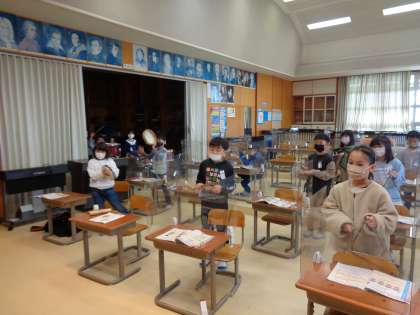 今日はいくつかあるリズムを、楽器を順番に交代しながら鳴らしました。順番に楽器を交代して鳴らすことが楽しいようで、みんな生き生きとした表情で、リズムよく楽器を鳴らすことができました。