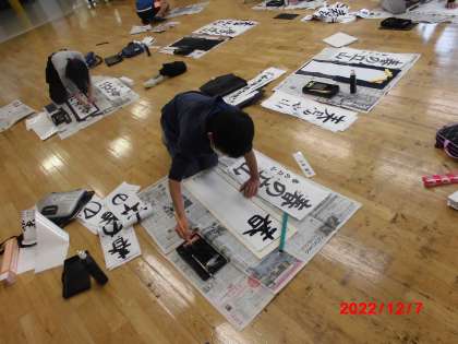 今年の書き初めは「春の立山」です。難しい〜とつぶやきながら真剣に練習していました。