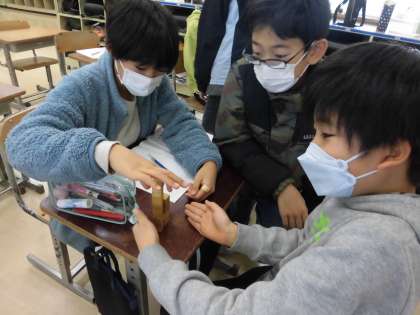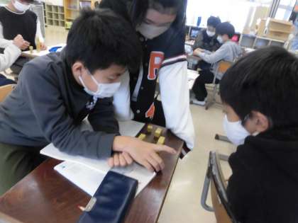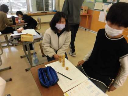 算数科の学習で平均について学習しました。平均がどんなところで使われているか聞いたところ、「テストの平均点!」「平均体重とか聞いたことある。」「平均年齢ってニュースで言ってた。」と身の周りから見つけてくることができました。今日はブロックを使って、平均化するとはどういうことなのか考えました。