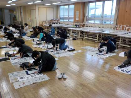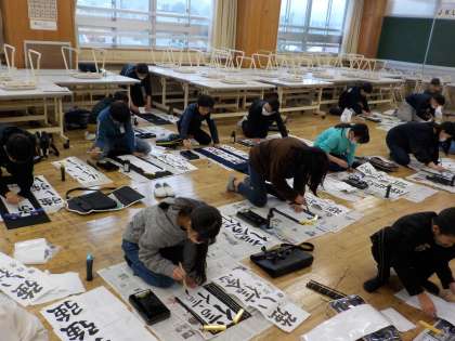 今年度の書初大会で、6年生は「強い信念」と書きます。
