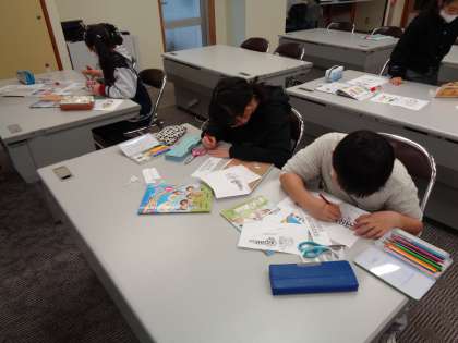 外国語活動では、クリスマスカードを作成しました。できあがったカードは、お家の方にプレゼントするようで、お家の方の顔を思い浮かべながら喜んでもらえるように楽しんで活動に取り組んでいました。