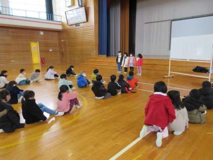 仲良し係が中心になって、お楽しみ集会を開きました。体育館は少し寒かったけれど、色鬼や椅子取りゲーム、ハンカチ落としをして楽しみました。判定に困るとじゃんけんで決めたり、話し合って決めたりして自分たちで解決する姿に成長を感じた時間でした。