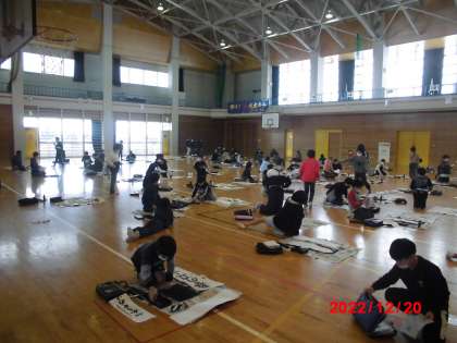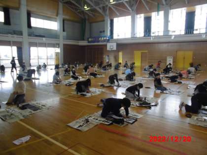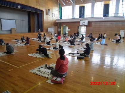 今日は二学期最後の書写をしました。1月と同じ、6年生と合同で書き初め大会のように練習をしました。