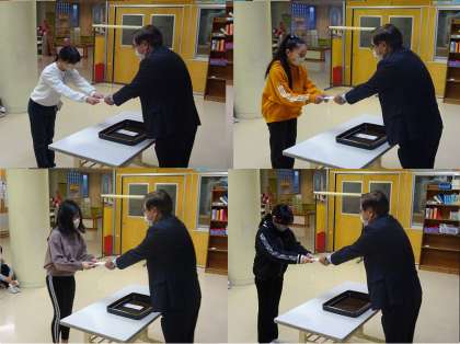 6年生が挑戦していた「上滝線利用促進標語」の表彰式がありました。