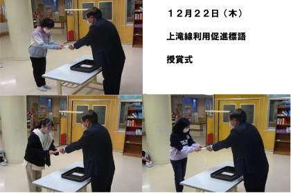6年生が挑戦していた「上滝線利用促進標語」の表彰式がありました。