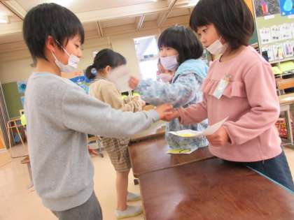 楽しみにしながら準備してきたお店屋さんごっこをしました。お店番とお客さんに分かれて沢山買い物をしていました。