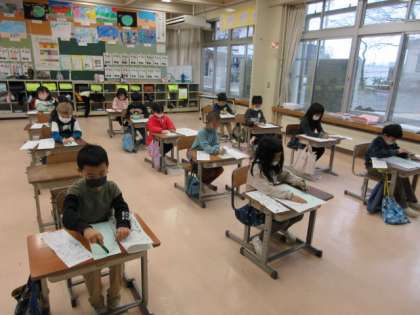 3学期が始まりました!元気いっぱいの顔が揃ってとても嬉しかったです。冬休みの楽しかったことを沢山おしゃべりしたり、久しぶりに友達と遊んだりして、学校生活をスタートしていました。書き初めの時間には、心静かに真剣に書いていました。