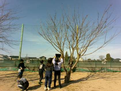 今日は、晴れて、とても気持ちのよい天気でした。子供たちと一緒に桜の観察をしました。季節ごとに観察を続けています。葉も花も全くありませんが、花のつぼみは枝の先にしっかりとありました。暖かくなる日が待ち遠しいです。