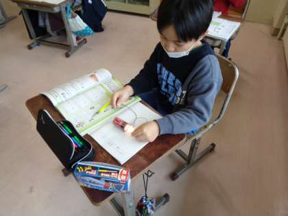 理科では、「明かりをつけよう」の学習が始まりました。今日は、豆電球と乾電池をどのようにつないだら明かりがつくか実験で確かめました。いろいろなつなぎ方を試して、明かりがつくときとつかないときのつなぎ方をみつけることができました。