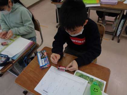 今日の理科では、豆電球をどのようにつなげると明かりがつくのか実験しました。自分でたてた予想をもとにいろいろ名つなぎ方を試していました。輪を作るようにして導線と乾電池をつなぐとつくことに気付いていました。