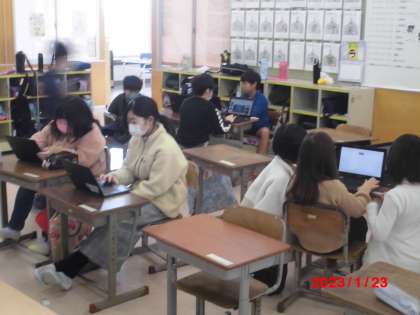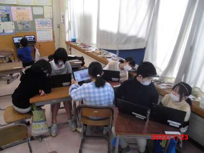 2月の授業参観で行う総合の発表準備を行いました。