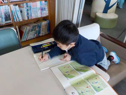 図書室での調べ方を確認した後に、それぞれが調べたい遊びのルールを調べ、ノートに書き記しました。次の時間には友達に調べた遊びを紹介する予定です。