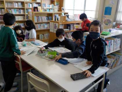 国語では「おにごっこ」の単元の中で、おにごっこ以外の遊びについて、調べたい遊びの遊び方と題名を調べて友達に説明をするという学習に取り組みました。