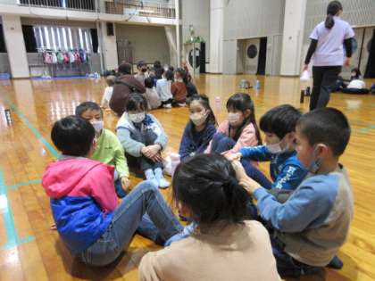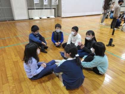 雪遊びのあとは、ホールへ戻って着替えをすませ、班毎に振り返りをしました。チューブそりやかまくらを作ったことが楽しかったと、振り返っていました。