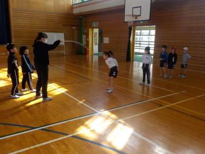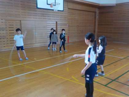 今日は体育で長縄を使い、8の字に挑戦しました。中々飛べなくても、頑張って何度も挑戦したり、すぐに入ることができない友達に声かけをしたりする子どもたちの姿が見られました。