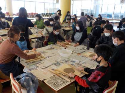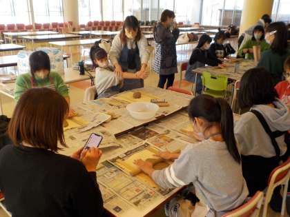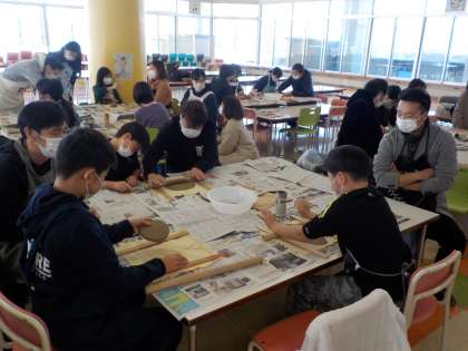 「越中陶の里 陶農館」の方にお越しいただき、手びねりによる陶器(お皿またはマグカップ)の製作体験をしました。