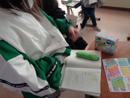 今日の理科は磁石のじっけんを行いました。磁石と鉄の間に服や下敷き、ノートがあっても引きつけられることが分かって、子供たちはびっくりしていました。