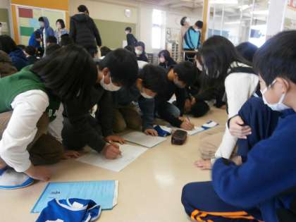 明日のファミリー班活動からリーダーは5年生になります。明日のファミリー班活動で何をしたらみんなが楽しめるか、6年生にアドバイスをもらいながら計画を立てました。様々な活動が5年生へと引き継がれています。もうすぐ最高学年です。