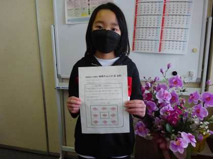 2年生の九九名人です。 上りは素早く、下りに苦労しましたが、完璧に暗唱できました。