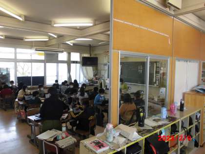 今日のリフレッシュタイムに、教室の壁ができました。これまで、オープン教室でなかなか集中できない人がいるのでは・・・と試行錯誤をしています。3時間目は移動中の音が聞こえる中でしたが、集中して授業を受けることができる人が多かったです。明日から、今以上に集中して頑張ってほしいです。
