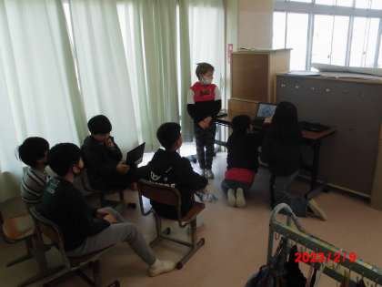 お互いのグループの発表を見て参考にしたり、アドバイスをしたりする姿もありました。