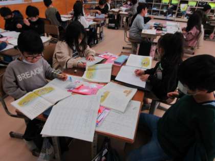 国語でグループ学習を行っています。学習内容を確認しながら予定を立てて課題に取り組みます。みんなで順番に音読したり、一緒に読んだりグループごとのスタイルで取り組んでいました。