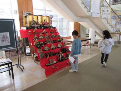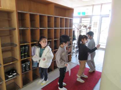 算数では、数探しビンゴをしました。靴箱の棚を数えたり、ひな人形の数を数えたり、楽しみながら学習しています。