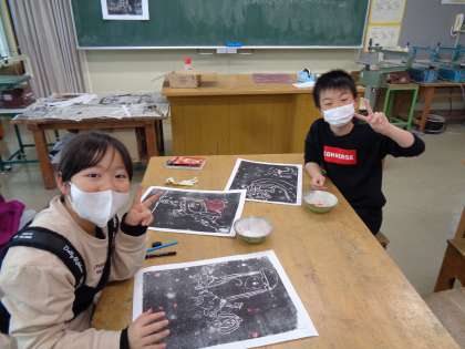 版画に色付け(3年1組)