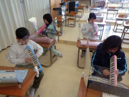 音楽では、自分で曲や楽器を選んでチームごとに練習を重ねています。パート分けや演出なども、自分たちでアイデアを出し合いながら考えました。発表会に向けて細かい動きまでこだわったり、流れを確認したりと楽しんで活動することができました。