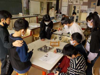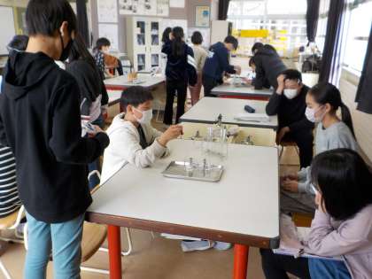 理科では、金属に酸性の水溶液を入れるとどうなるかの実験をしました。