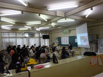 6年生は、「おおしょう保育園」との交流学習について、まとめの発表を行いました。